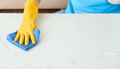 - Curățarea și dezinfectarea suprafețelor, inclusiv mobilier, podele și geamuri;